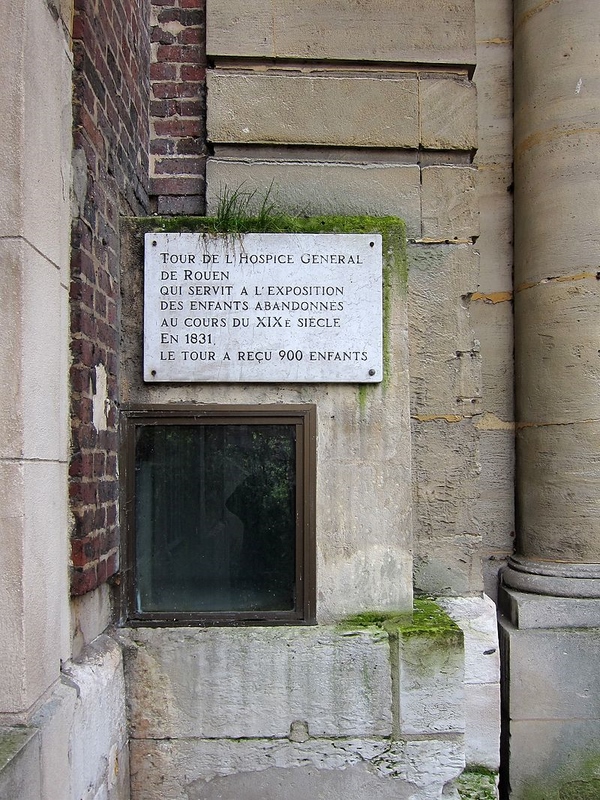 Les tours d'abandon sont généralement dans les hôpitaux ou hospices. Elles consistent en un tiroir dans un mur extérieur qui s'ouvre sur un petit lit, chauffé ou isolé. Quand un bébé y est mis, des détecteurs alertent les personnes soignantes pour qu'elles viennent chercher le bébé et s'en occupent. Ensuite l'enfant est mis en adoption ou placé.